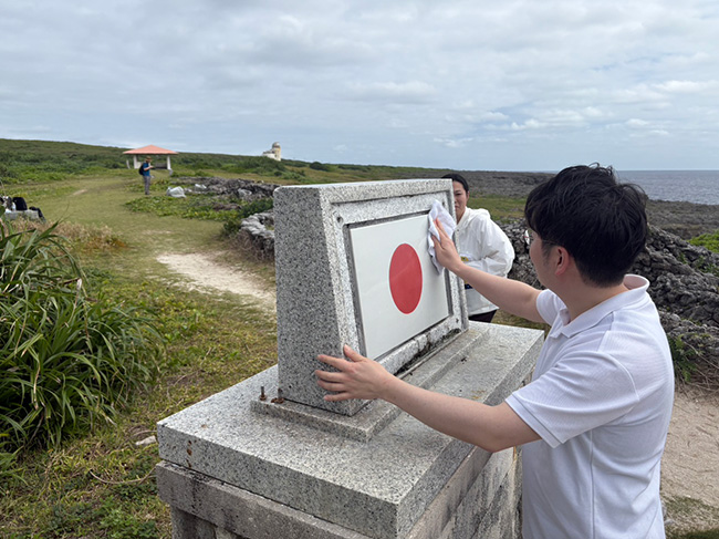 「日本最南端の有人島、沖縄県の波照間島において、波照間之碑・聖寿奉祝の碑の視察並びに清掃奉仕を行いました。 |